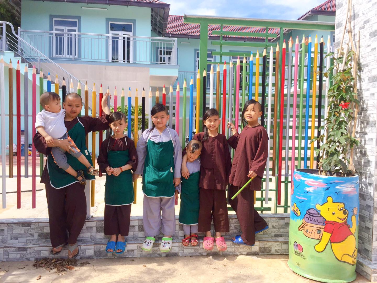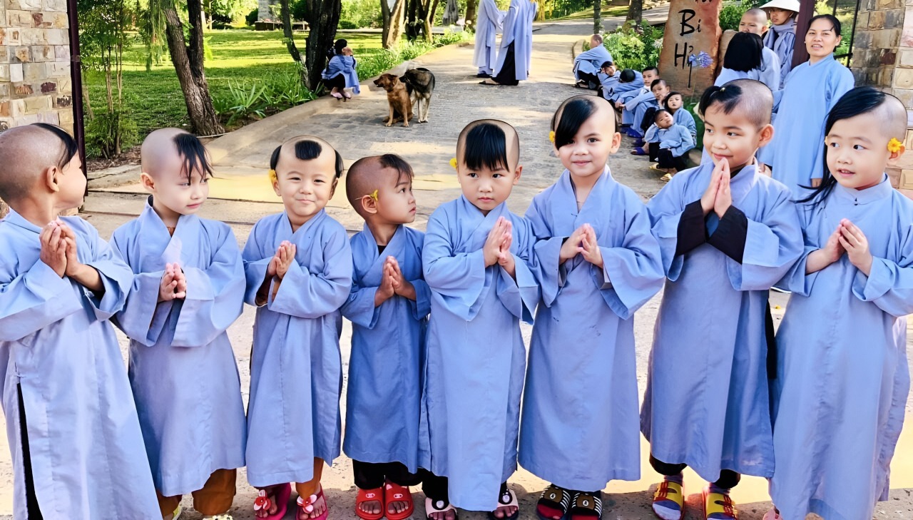hàng trăm em từ những hoàn cảnh khác nhau đang sinh hoạt thật đầm ấm yên vui được tu